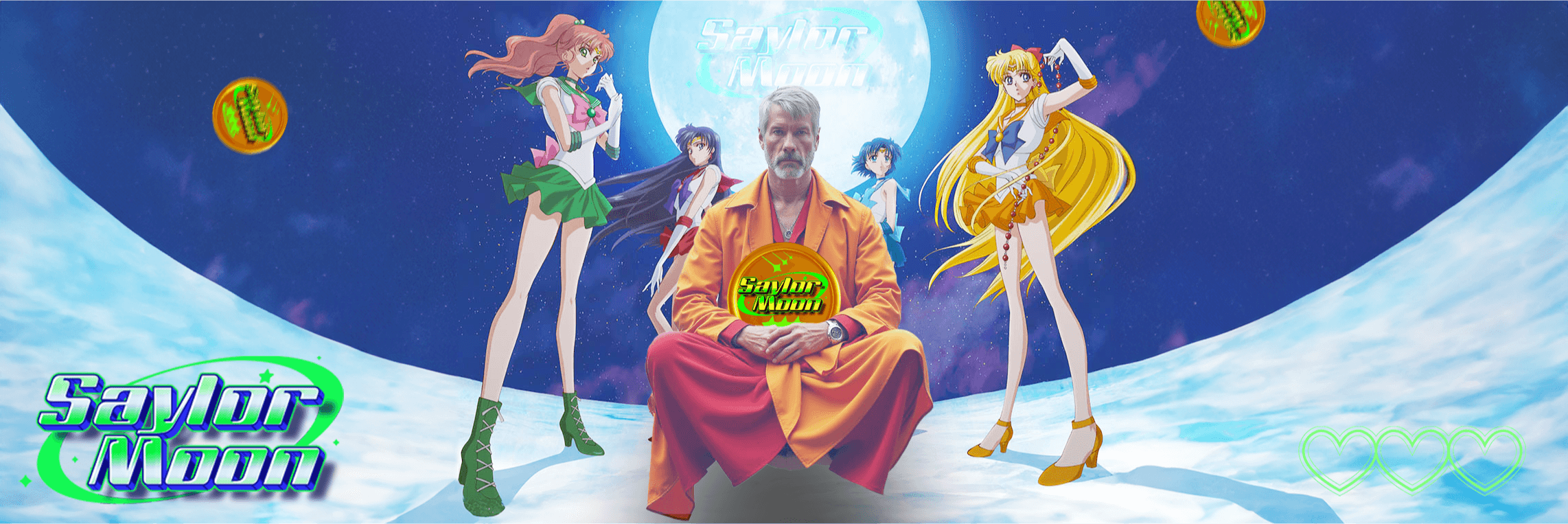 In the world of memes, $SAYLOR was not just a CEO but a financial superhero. With Bitcoin’s power, he transformed into a guardian, fighting off Jeets and FUDsters with his ultimate weapon, Moon Power Bitcoin. His allies, the Sailor Moon team, joined him in defending the market. $SAYLOR, known for his real-life billion-dollar Bitcoin investments, led daring expeditions into the financial galaxy, uncovering the mysteries of blockchain. His love for Bitcoin became legendary, as he turned doubters into true crypto believers with humor and power.
